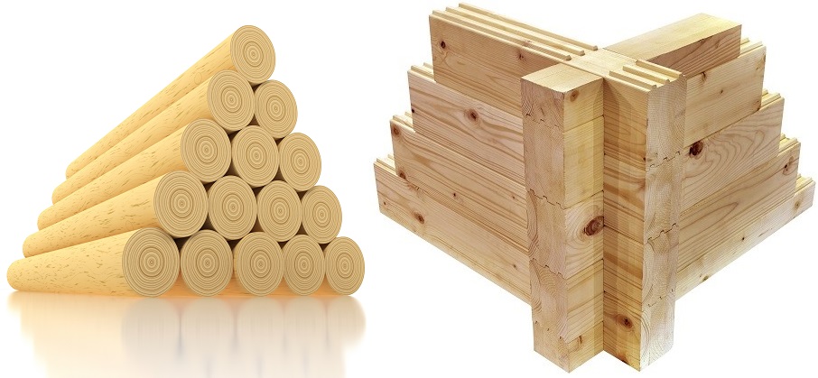Оцилиндрованное бревно и клееный брус из Ангарской сосны,